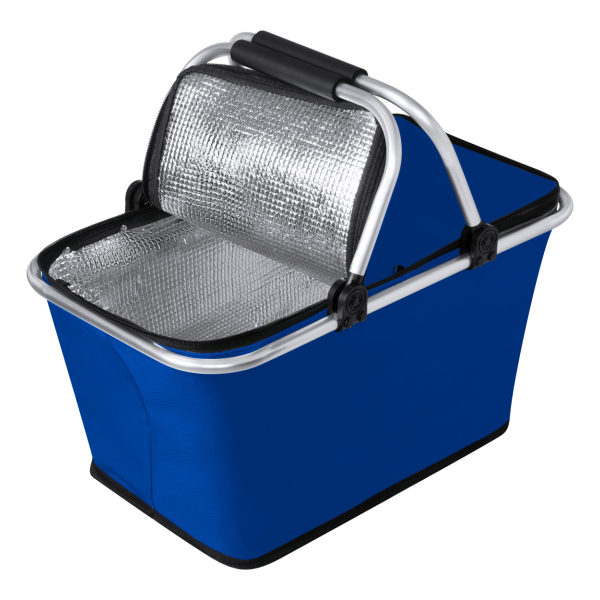Opvouwbare koeler picknickmand met aluminium frame en gewatteerde handvatten, 600D polyester.